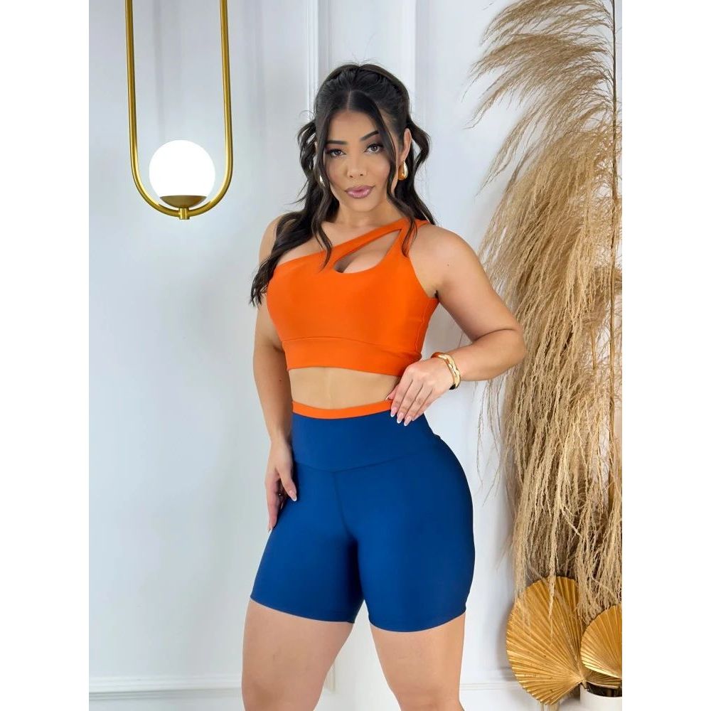 Conjunto Fitness Feminino Bicolor Short Suplex Cintura Alta Não Transparente Academia Fitness Treino