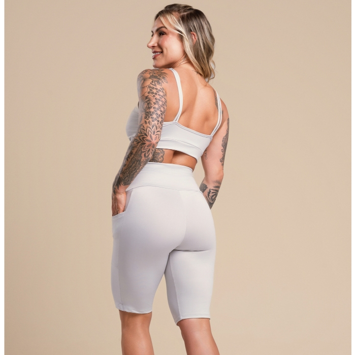 Bermuda confeccionada em suplex brilhoso, esse modelo possui cós alto. O cós modela e promove melhor ajuste ao corpo. Confortável, ela é ideal para a prática de atividades físicas e tarefas diárias. Possui bolso para segurança e conforto. Top sem bojo, com toque macio porém firme para prática de exercícios do dia a dia. Informações adicionais: Para garantir melhor durabilidade de seu produto: - Deve ser lavado apenas à mão e com sabão neutro. - Prefira a secagem à sombra. - Dispensa o uso de amaciante e ferro de passar. Atenção: Pode haver variação nas cores por conta de fatores como iluminação fotográfica e brilho de cada monitor. - Composição: - 94% Poliéster - 6% Elastano - Devolução contra defeito de fabricação. Tabela de medida: P (34/36) Busto: 64 / Cintura: 54 / Quadril: 66 M (38/40) Busto: 70 / Cintura: 58 / Quadril: 70 G (40/42) Busto: 72 / Cintura: 60 / Quadril: 74 GG (44/46) Busto: 76 / Cintura: 66 / Quadril: 78