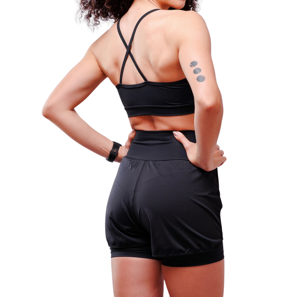Conjunto Feminino Fitness Short Duplo Cós alto + Top Poliamida. Esse conjunto foi desenvolvido pensando em quem busca praticidade, segurança e muito estilo. O Short com um design moderno de duas camadas, ele combina um shorts interno ajustado, que garante compressão leve, suporte e segurança, com uma camada externa mais solta, que proporciona leveza, fluidez e um visual esportivo, versátil e cheio de personalidade. O top fornece conforto, sustentação e estilo. O tecido em poliamida com elastano oferece toque macio, alta elasticidade, excelente respirabilidade e proteção UV, garantindo conforto e performance em qualquer atividade. Além disso, o short também possui cós alto com cós duplo modela a cintura, valoriza a silhueta e mantém a peça sempre no lugar, sem desconforto ou ajustes constantes. Perfeito para te acompanhar nos treinos, corridas, caminhadas, funcional, crossfit, yoga ou até para criar aquele look casual fitness que transita do treino para o dia a dia com muito estilo. Estilo, conforto e segurança para você se sentir confiante em qualquer ocasião! Indicado para: • Academia • Cross Training • Beach tennis • Corrida • Treino funcional • Futevolei Tabela de Medidas - Short P = Veste do N° 34 ao 36 Cintura de 69 cm à 73cm Quadril de 94cm à 97 cm Comprimento: 34 cm M = Veste do N° 38 ao 40 Cintura de 74 cm à 84 cm Quadril de 98 cm à 101 cm Comprimento: 37 cm G = Veste do N° 40 ao 44 Cintura de 85 cm à 98 cm Quadril de 102 cm à 105 cm Comprimento: 38 cm GG = Veste do N° 46 ao 48 Cintura de 99 cm à 105 cm Quadril de 106 cm à 109 cm Comprimento: 40 cm Tabela de Medidas - Top P = Veste do N° 34 ao 36 Busto de 80 cm à 89 cm M = Veste do N° 38 ao 40 Busto de 90 cm à 95 cm G = Veste do N° 40 ao 44 Busto de 96 cm à 104 cm GG = Veste do N° 46 ao 48 Busto de 105 cm à 110cm Composição: Tecido composto por 90% poliamida e 10% elastano com o selo Lycra® de qualidade. Dicas de lavagem • Preferencialmente lave as peças no modo delicado da máquina de lavar com outras de cores semelhantes • Não deixe de molho • Utilize sabão neutro • Não use água quente • Deixe secar naturalmente • Não passar Poliamida Premium – Tecido de alta qualidade, macio, resistente e com excelente elasticidade Cintura Alta Modeladora – Valoriza a silhueta e oferece firmeza no abdômen Média Compressão – Sustentação muscular sem desconforto Conforto Extremo – Não aperta e não marca o corpo Secagem Rápida – Ideal para treinos intensos e dias quentes Não Desbota e Não Forma Bolinhas – Durabilidade garantida mesmo após várias lavagens Costura Reforçada – Mais resistência para aguentar qualquer tipo de treino Design Anatômico – Ajuste perfeito ao corpo com total liberdade de movimento Versatilidade no Uso – Perfeita para academia, corridas, caminhadas ou looks casuais Tamanhos do P ao GG – Veste diversos tipos de corpo com conforto e estilo Cores Atuais - Pra você estar sempre na tendência Disponibilidade de envio Pronta entrega Envio imediato Enviamos para todo Brasil