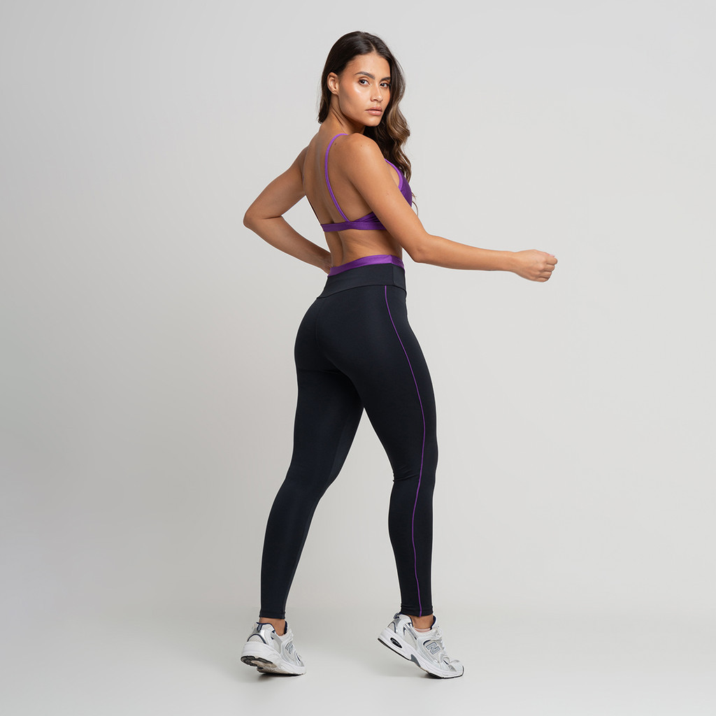 Conjunto Fitness Legging com detalhe em Vivo Roxo e Top Roxo Frente Unica