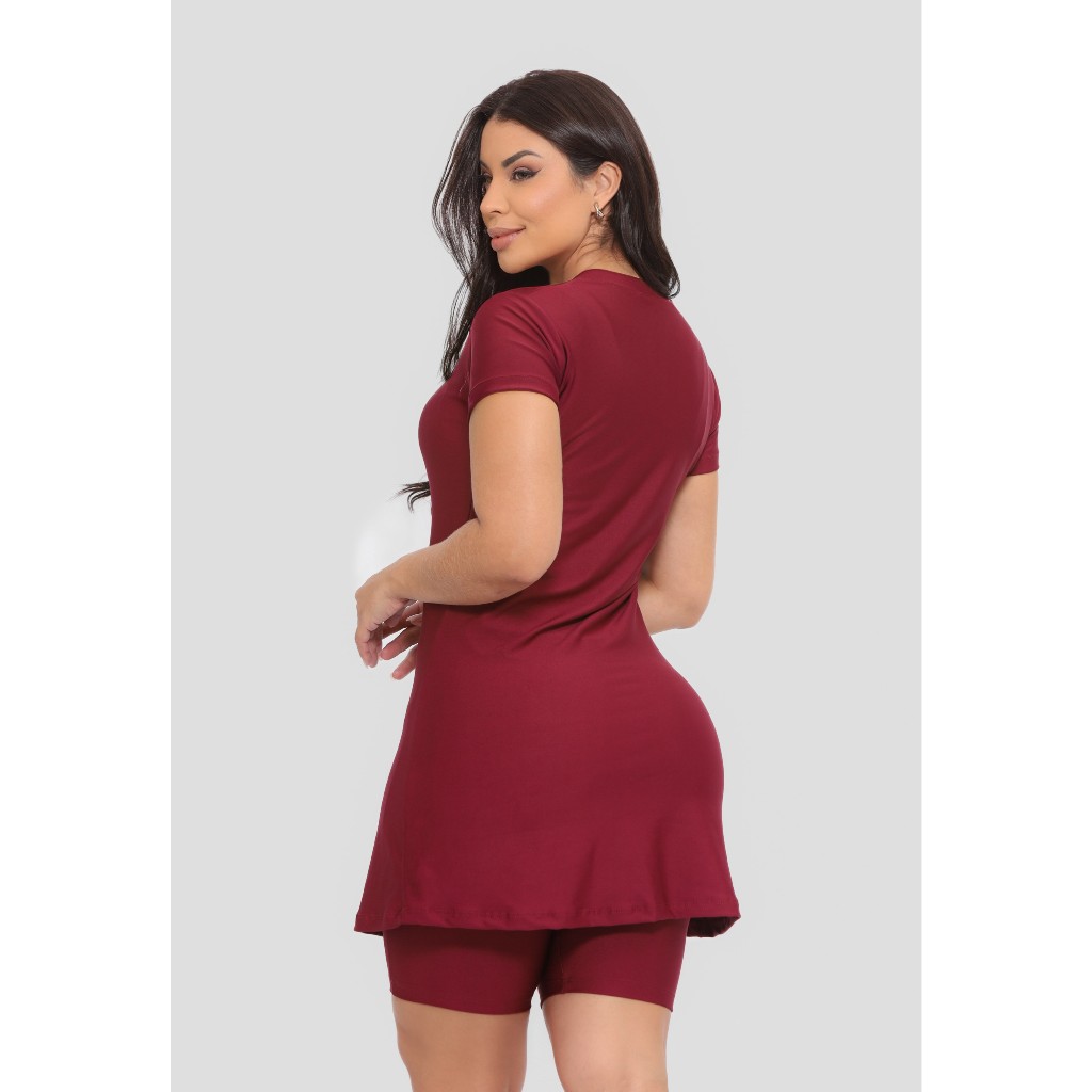 Conjunto Fitness Moda Evangelica Com Bolso Vestido e Short Treinos Corrida