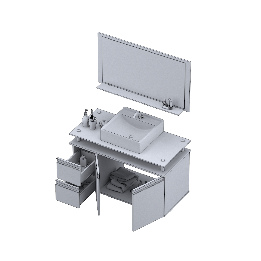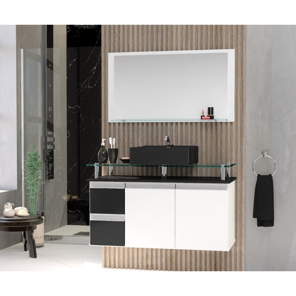 Conjunto Gabinete Banheiro Diamante 80cm MDF + Espelheira + Cuba + tampo de vidro temperado