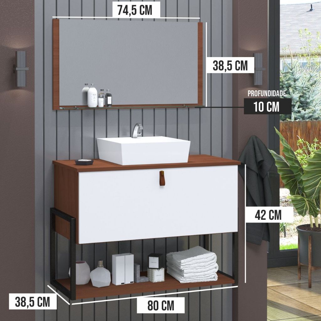 Conjunto Gabinete Banheiro Vegas 80cm MDF + Espelheira + Cuba