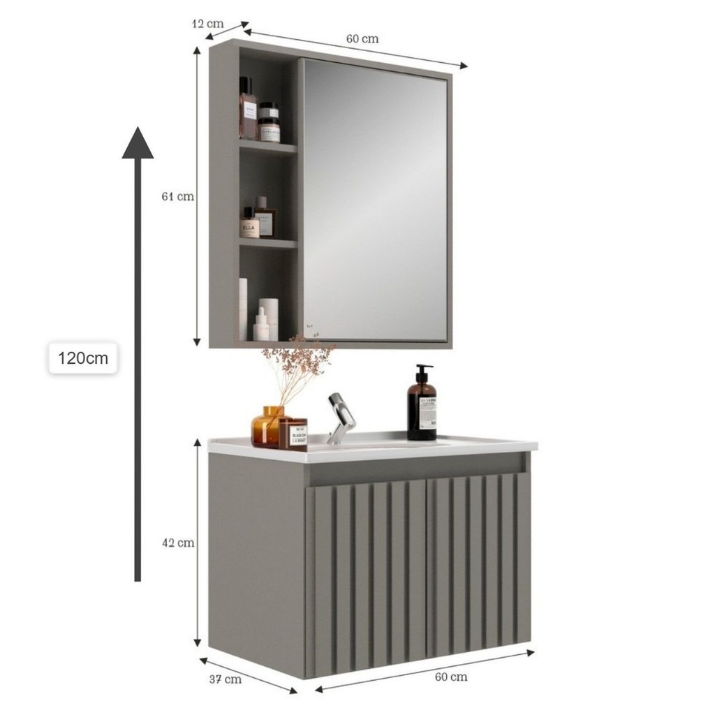 Conjunto Gabinete para Banheiro com Espelheira Alpes 60 Cimento