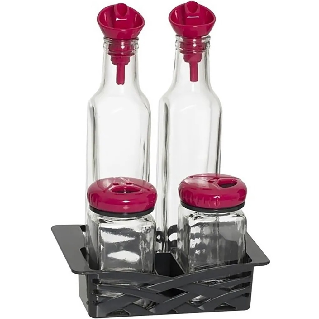 Conjunto Galheteiro De Vidro 2 Garrafas E 2 Porta Condimento