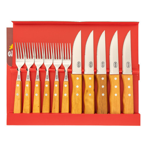 Conjunto Garfo E Faca Premium Mor 12 Peças Madeira Churrasco