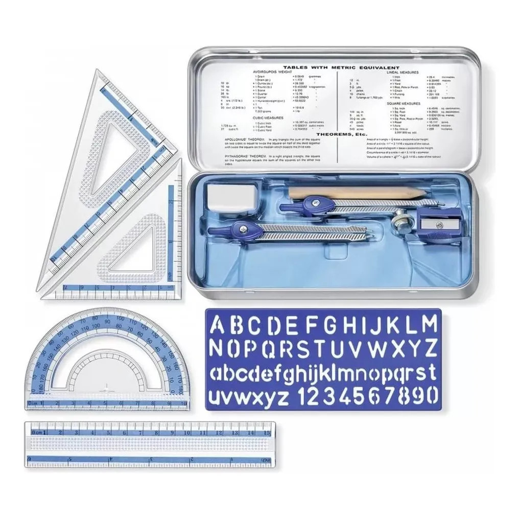 Conjunto Geométrico Escolar 10 Peças Staedtler 557 Régua Compasso
