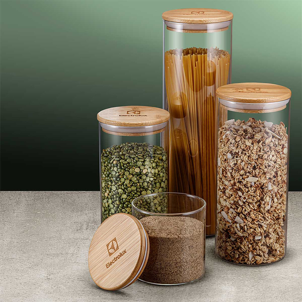 Conjunto Hermético Porta-Mantimento Vidro Electrolux Com Tampa Bambu 4 Peças