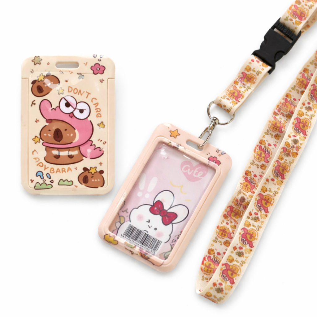 Conjunto Identificação Estampado Capivara Fofa Cordão C/ Porta Crachá Veterinária Medicina Escolar