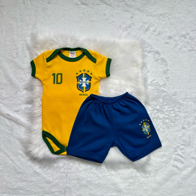 Conjunto Infantil Bebê Copa 2026 Uniforme Do Brasil / Malha Suedine 100% Algodão