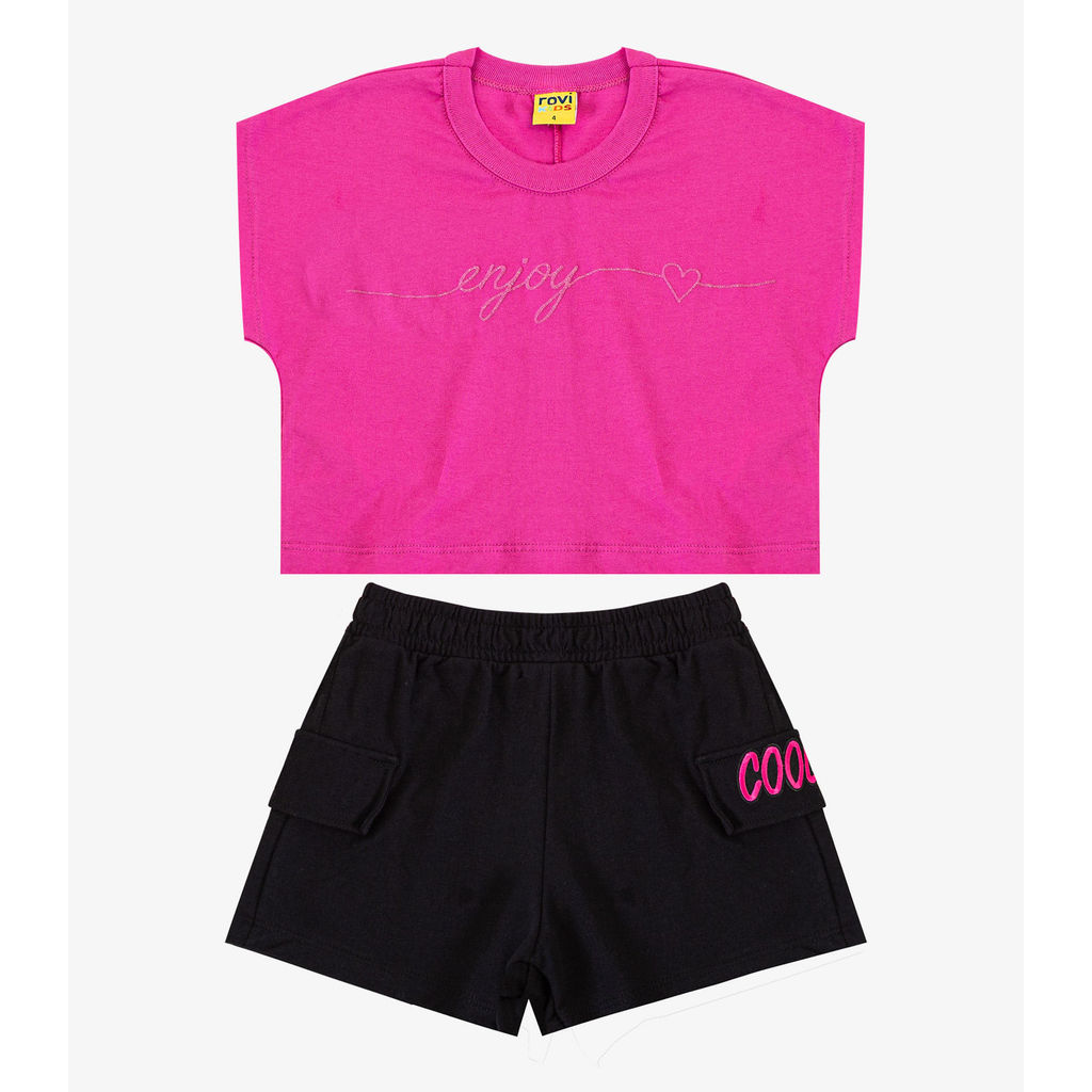Conjunto Infantil Blusa Com Shorts Rovi Kids Rosa