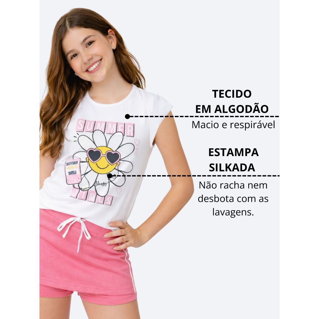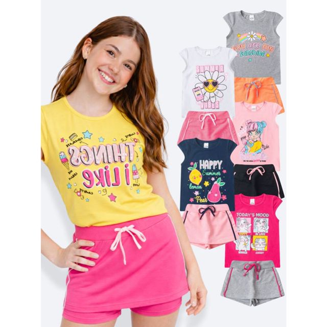 Conjunto infantil feminino composto por camiseta e shorts, confeccionado em tecido leve e macio. Ideal para os dias quentes, garante conforto, liberdade de movimentos e um visual alegre para o dia a dia. Conjunto infantil feminino com estampas modernas e divertidas, perfeito para o uso diário. A camiseta possui modelagem confortável e ótimo acabamento. O shorts conta com cós elástico e amarração decorativa, proporcionando ajuste ideal e conforto durante todo o dia. Ideal para passeios, escola e momentos de lazer, mantendo a criança fresca e à vontade. TABELA DE MEDIDAS – CAMISETA Tamanho 04 | 4 a 5 anos | Altura 42 cm | Largura 30 cm Tamanho 06 | 5 a 6 anos | Altura 44 cm | Largura 32 cm Tamanho 08 | 7 a 8 anos | Altura 45 cm | Largura 33 cm Tamanho 10 | 8 a 9 anos | Altura 47 cm | Largura 34 cm Tamanho 12 | 9 a 10 anos | Altura 48 cm | Largura 35 cm Tamanho 14 | 11 a 12 anos | Altura 52 cm | Largura 36 cm Tamanho 16 | 12 a 13 anos | Altura 54 cm | Largura 38 cm TABELA DE MEDIDAS – SHORTS Tamanho 04 | 4 a 5 anos | Altura 22 cm | Largura 30 cm Tamanho 06 | 5 a 6 anos | Altura 23 cm | Largura 32 cm Tamanho 08 | 7 a 8 anos | Altura 25 cm | Largura 34 cm Tamanho 10 | 8 a 9 anos | Altura 26 cm | Largura 35 cm Tamanho 12 | 9 a 10 anos | Altura 27 cm | Largura 36 cm Tamanho 14 | 11 a 12 anos | Altura 28 cm | Largura 37 cm Tamanho 16 | 12 a 13 anos | Altura 29 cm | Largura 39 cm * Medidas feitas com a peça aberta, sem esticar. Pode haver variação de até 1–2 cm. PERGUNTAS FREQUENTES O tamanho veste conforme a idade indicada? Sim. A modelagem segue o padrão infantil. Recomendamos sempre conferir a tabela de medidas antes da compra. O conjunto desbota após as lavagens? Não. Possui boa fixação de cor. Para maior durabilidade, lave do avesso, não utilize alvejante e evite secadora. O conjunto é confortável para uso prolongado? Sim. O tecido é leve, macio e respirável, ideal para o dia a dia da criança.