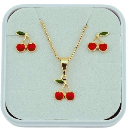 | Conjunto Infantil Brinco E Colar Cereja Banhado Em Ouro Hipoalergên... este produto | R$ 40,41 | 10% | 5.0/5 | — |