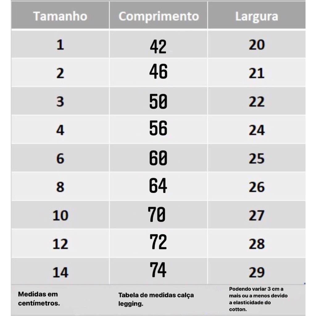 Conjunto Infantil Para Meninas. ATENÇÃO! Caso seja necessária alguma alteração pedimos que informe IMEDIATAMENTE após a compra, após o pedido ser expedido NÃO é mais possível realizar trocas. Pedimos que confira a tabela de medidas, a modelagem é pequena. O conjunto é composto por uma calça legging em cótton (85% algodão no mínimo) e uma blusa manga curta com estampa em meia malha. Não é possível alterar as cores do kit, será enviado conforme a foto do momento da seleção. A calça estampada é variada conforme disponibilidade em estoque, podendo NÃO ser igual a da foto. Os tamanhos enviados nesse anúncio são 01, 02, 03, 04, 06, 08, 10, 12, 14. Após a confirmação do pagamento temos o prazo de 3 dias ÚTEIS para realizar o envio. Qualquer dúvida, nos contate via chat, estamos à disposição para lhe atender. Obrigado!