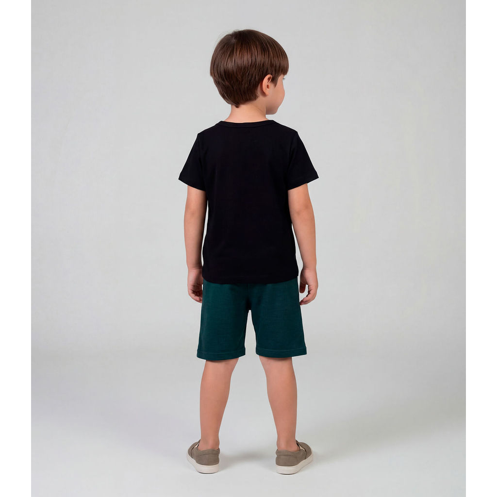 Conjunto Infantil Camiseta e Bermuda Select, desenvolvido em Meia Malha e Moletinho Texturizado, proporcionando conforto e estilo para o dia a dia. A camiseta apresenta decote redondo, manga curta, barra com acabamento em bainha e estampa localizada frontal que traz um toque moderno ao visual. A bermuda possui cós com elástico e acabamento em bainha na barra, garantindo ajuste perfeito e liberdade nos movimentos. Ideal para compor looks leves e práticos para as crianças.
