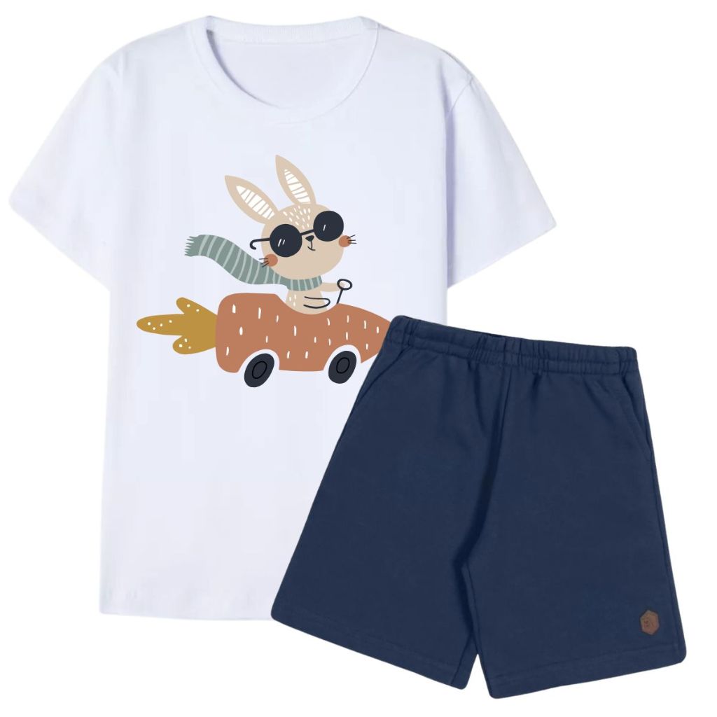Conjunto infantil camiseta manga curta e shorts moletinho coelho páscoa 100% algodão
