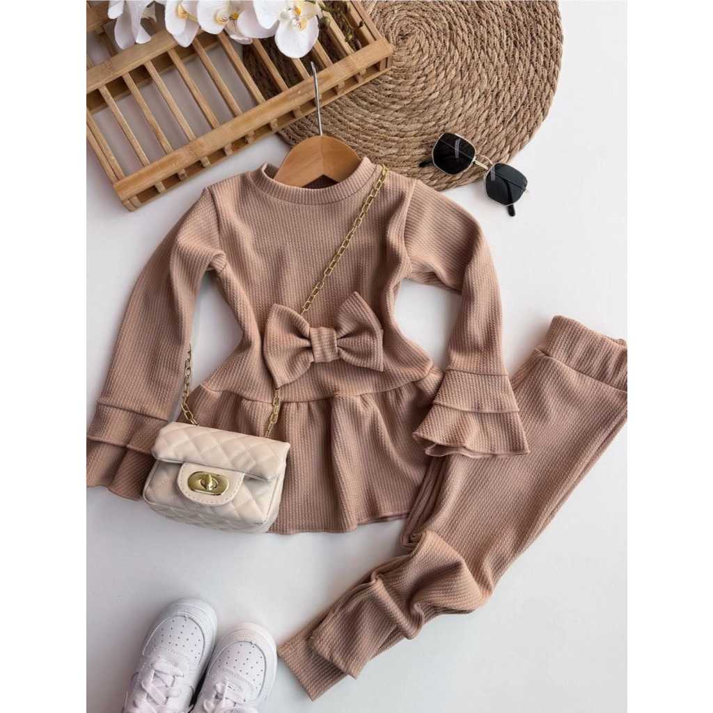 Conjunto Infantil Premium - Blusa Peplum e Calça em Malha Canelada Modelo: Blusa manga longa com laço + Calça comprida. Material: Malha Canelada (composição ideal para durabilidade e flexibilidade). Gola: Redonda com acabamento reforçado. Punhos: Dobrados para um melhor caimento. 💡 Por que escolher este conjunto? ✅ Não desbota facilmente na lavagem. ✅ Tecido que quase não amassa – praticidade para as mamães! ✅ Modelagem moderna que acompanha o crescimento da criança. Garanta já o look favorito da sua princesa!🛒💖