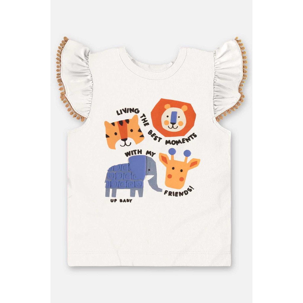Conjunto infantil para menina em cotton com elastano e moletom sem felpa. Blusa com estampa divertida, mangas com babado franzido e detalhe em renda. Short com cós elástico e cadarço decorativo na cintura, e bolsos funcionais. Ideal para brincar com estilo e conforto.Tecido: Blusa: Cotton (Algodão e Elastano) | Short: Moletom Sem Felpa (Algodão e Poliéster)Composição: Blusa: 96% Algodão e 4% Elastano | Short: 50% Algodão e 50% PoliésterModelagem: AmplaComprimento Mangas: CurtaComprimento: CurtoForro: NãoCintura: MédiaDecote/Gola: Redondo
