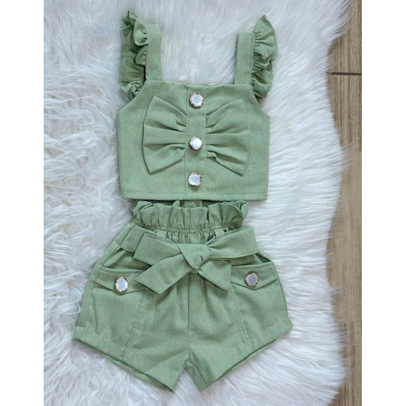 Conjunto infantil em linho, Cropped e Shorts