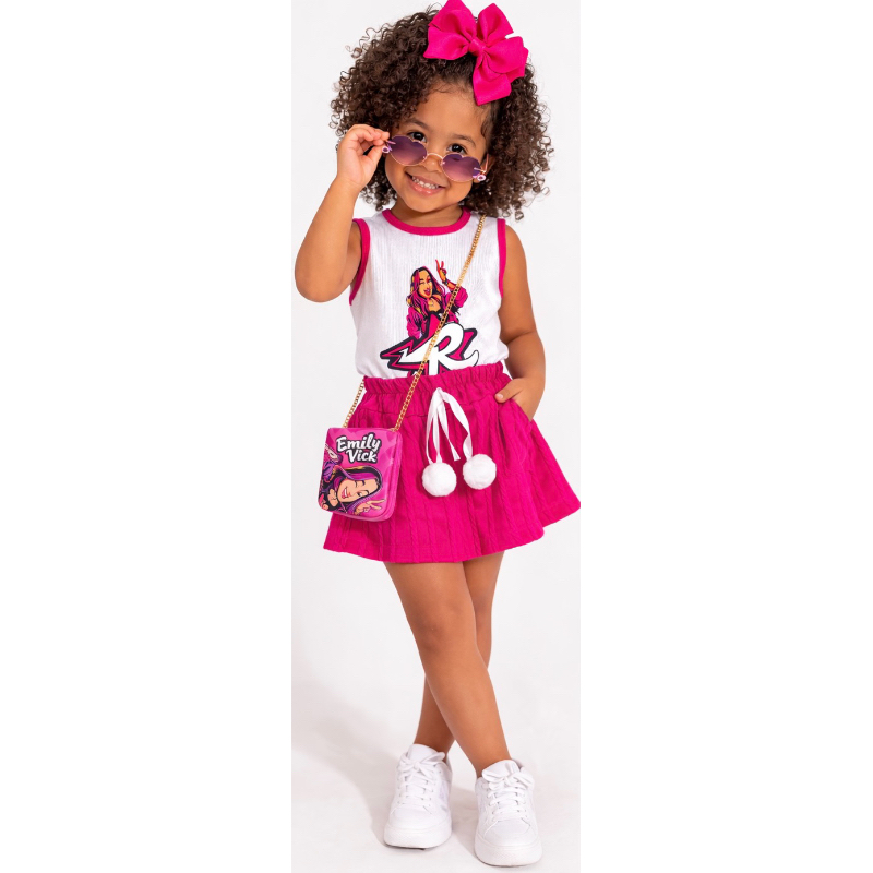CONJUNTO INFANTIL EMILLY VICK GRUPO DOS ROSAS BLUSA + SHORT SAIA MODA BLOGUEIRINHA TENDÊNCIA PARA MENINAS 2 A 12 ANOS