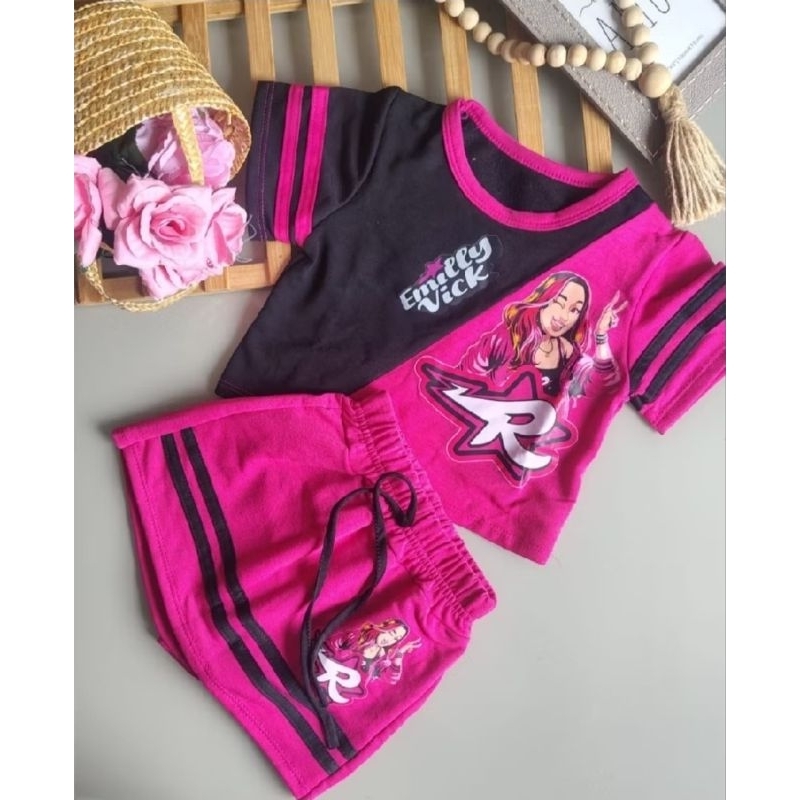 Conjunto Infantil Feminino Blogueirinha Emilly Vick Cropped + Short Saia Pink Moda Kids Meia Estação 6 a 14