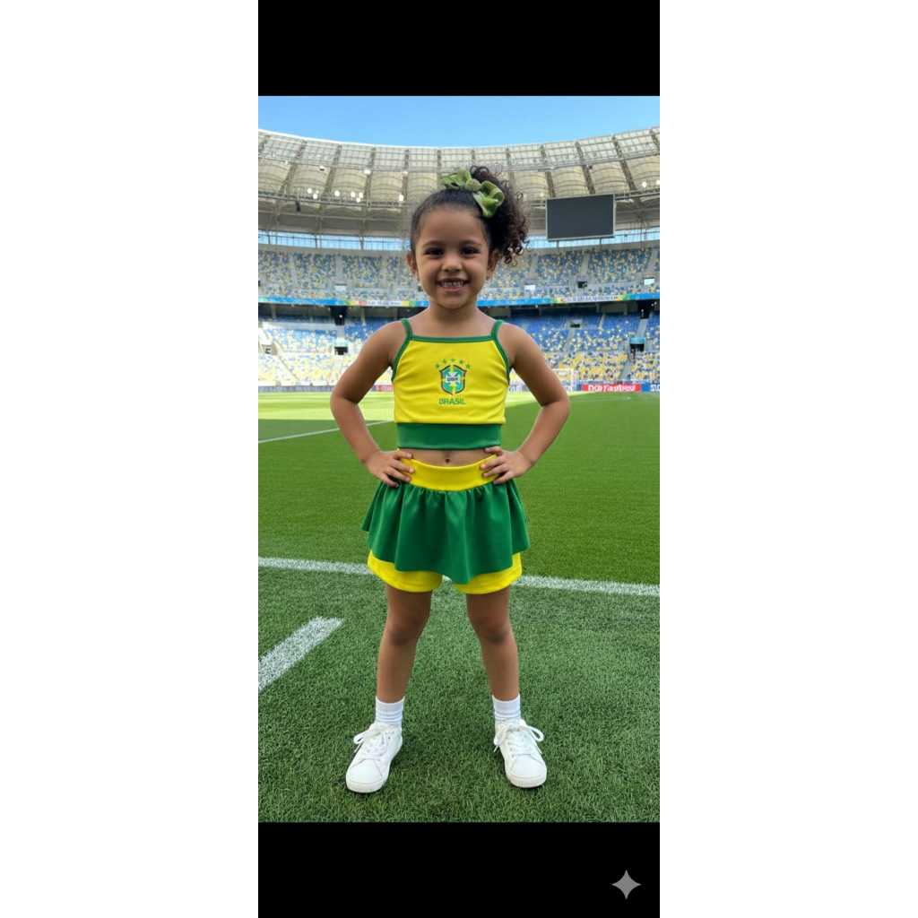Para meninas cheias de personalidade! 👑💚 Esse conjunto blogueirinha em elanca é aquele modelo que veste super bem e deixa a criança linda e confortável ao mesmo tempo. 💛 Cropped moderno 💚 Short com sainha estilosa 💛 Tecido com ótima elasticidade 💚 Perfeito para fotos, passeios e eventos Disponível do tamanho 2 ao 14 anos. Garanta já o look queridinho das pequenas! ✨