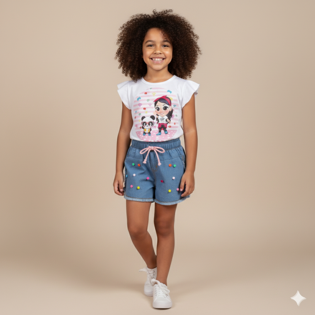 Conjunto Infantil Feminino Luluca | Jeans | Blogueirinha | Roupa Menina | Verão | Look Pandinha | Luxo.
