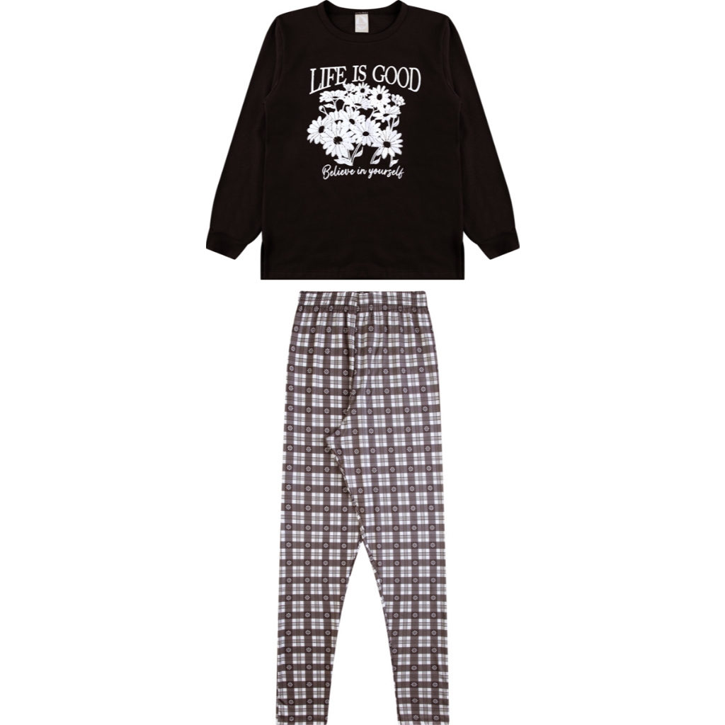 Look moderno e quentinho para os dias frios! Esse conjunto infantil feminino une conforto e estilo com sua blusa de moletom peluciado estampada e legging xadrez em suplex com toque macio. A blusa tem modelagem reta com fendas laterais, gola careca e estampa frontal em alto-relevo. A calça legging tem elasticidade, cintura com elástico e caimento ajustado ao corpo. Ideal para o dia a dia ou momentos de lazer com as amigas. Destaques: Blusa 100% algodão com interior peluciado Legging em suplex com elasticidade e estampa xadrez Estampa “Life is good” com flores Disponível nas cores verde militar e preto Tamanhos: 10, 12 e 14 anos