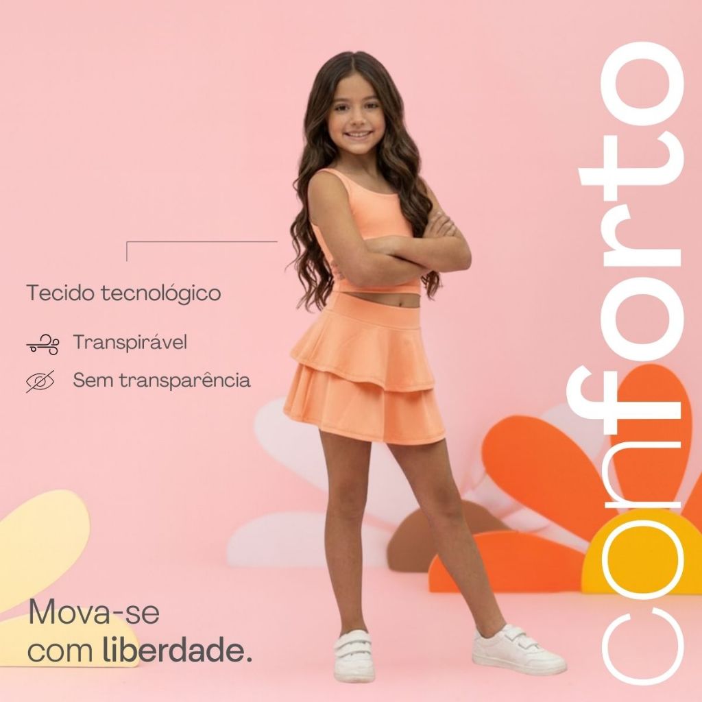 Conjunto Infantil Feminino Poliamida Premium Top Short Saia Passeio Escola Moda Fitness Kids