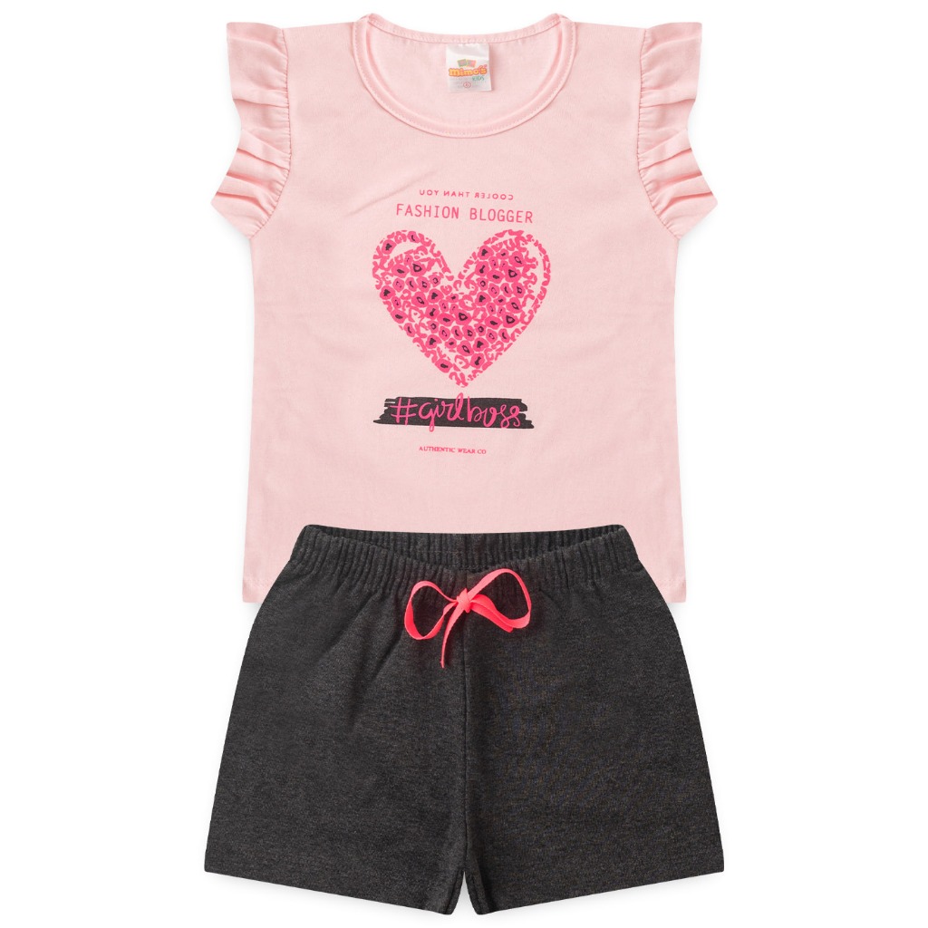 Conjunto Infantil Feminino Silk Coração Tam 2 ao 14 anos