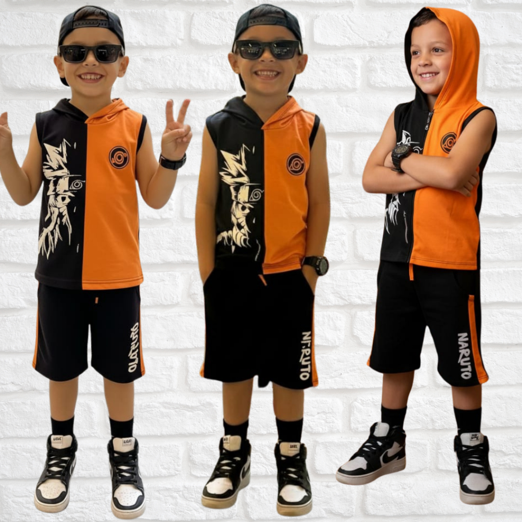Conjunto Infantil Juvenil Menino Blusa 100% Algodão + Bermuda Moletinho Roblox Naruto Mickey Carinha
