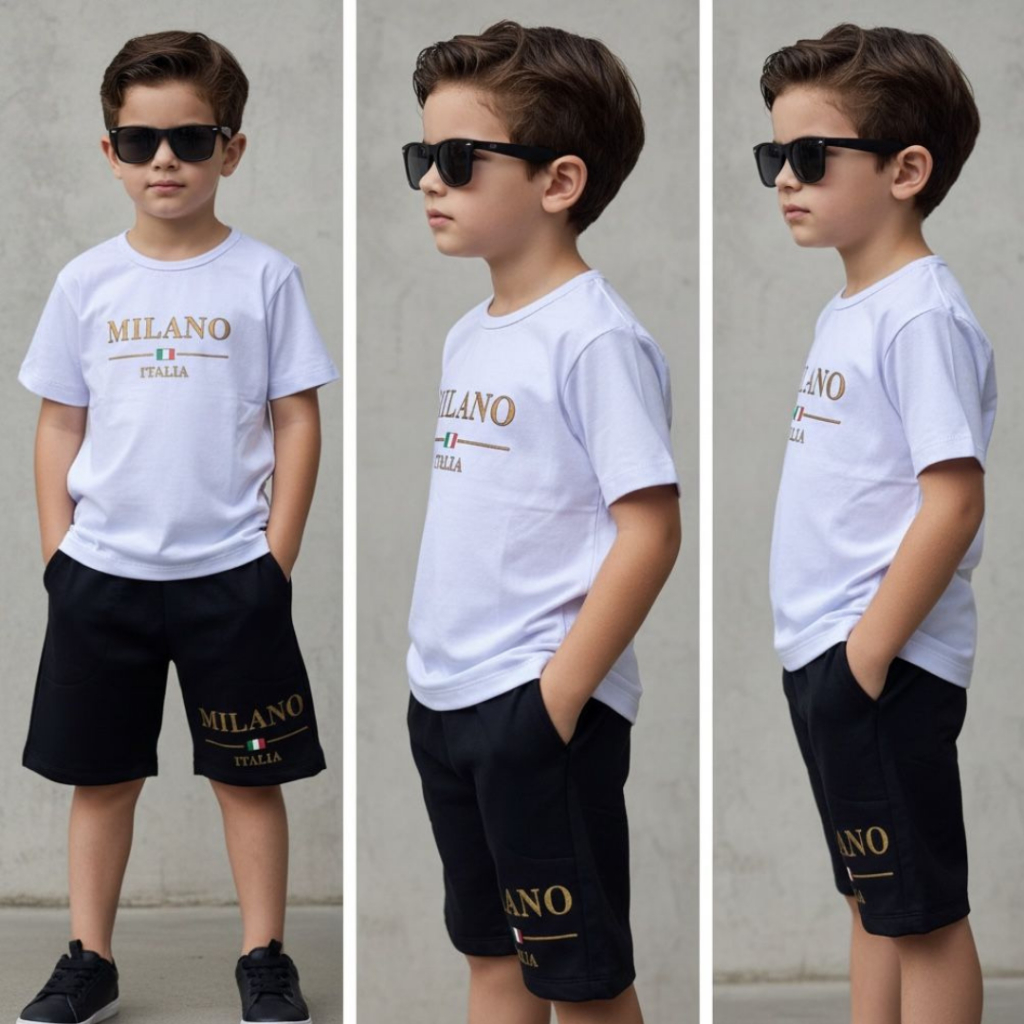 Conjunto Infantil Masculino Camisa de Malha e Bermuda de Moletinho Blogueirinho Veste 4 ao 14 anos