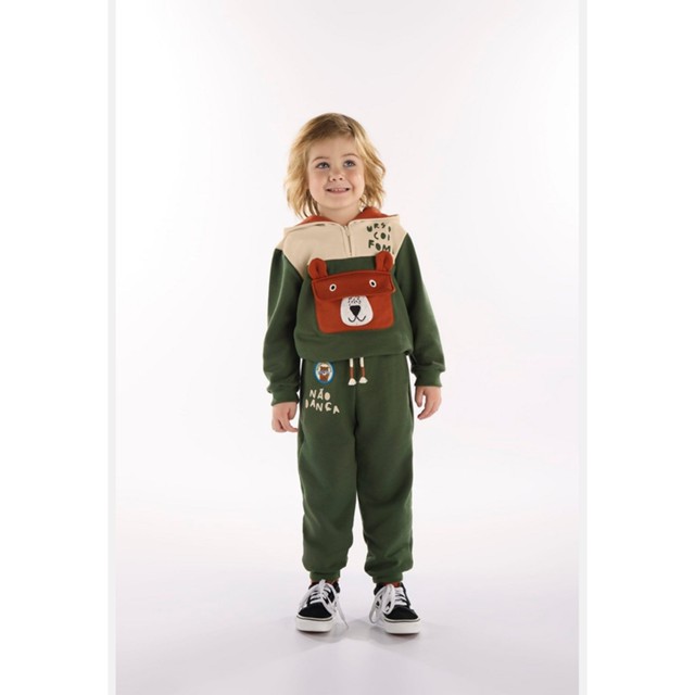 Conjunto Infantil Masculino com Casaco e Calça Urso Amigo Três e Já