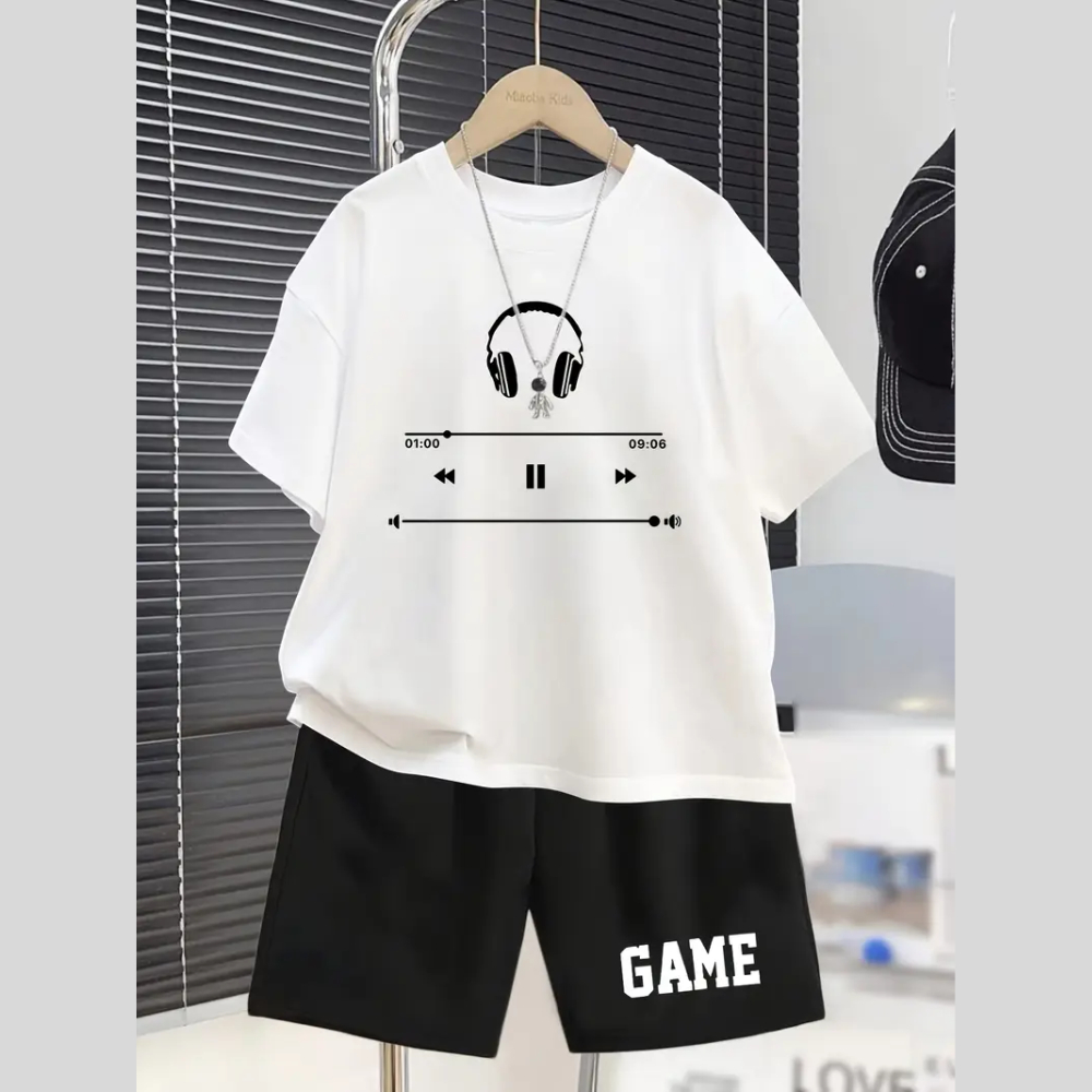 Conjunto Infantil Masculino Estampa Música Fone Game 377 Ootd Estilo Streetwear Menino Lindo Look