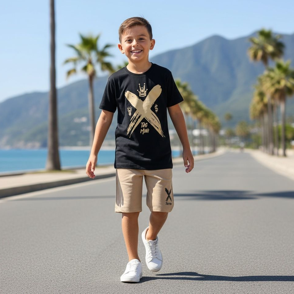 Conjunto Infantil Masculino Estiloso Verão - Camiseta + Shorts Casual Juvenil