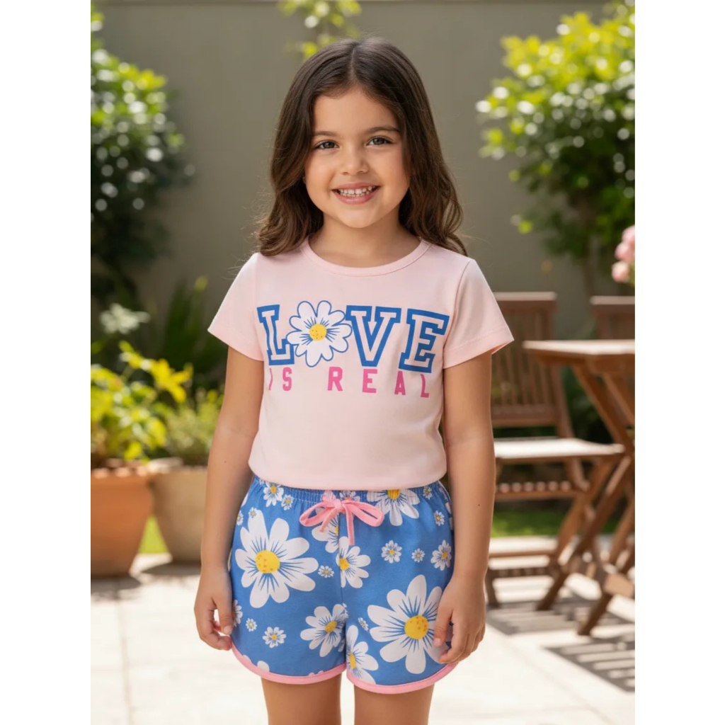 Conjunto infantil Menina 2 peças BÁSICO 1 ao 16 Verão em Cotom blusa e shorts