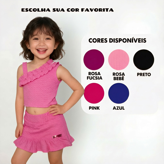 Conjunto Infantil Menina 2 Peças Blusinha E Short Saia Lançamento Têndencia