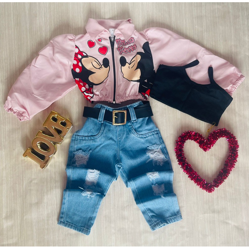 Conjunto infantil menina blogueirinha 4 peças Minnie