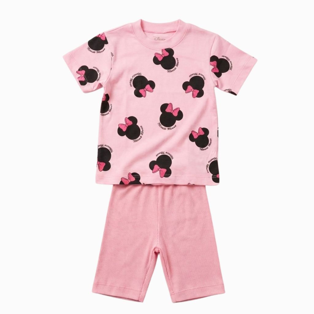 Conjunto Infantil Menina Blusa e Bermuda Minnie Rosa Verão Premium