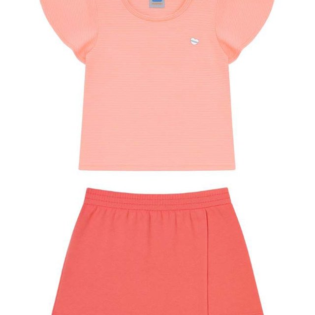 Conjunto Infantil Menina Blusa em Meia Malha Linear e Short-Saia em Moletinho - - Feita para trazer praticidade e frescor ao dia a dia das crianças. Confeccionada em malha, com composição Blusa 65% Algodão, 32% Poliéster, 3% Elastano, 67% Algodão, 33% Poliéster, traz toque macio e confortável. Ótima escolha para combinar com looks frescos usados no verão. Um básico essencial para o clima quente, trazendo bem-estar ao vestir. Características Gerais do Produto: Acompanha o produto: • 1 Blusa e 1 Shorts