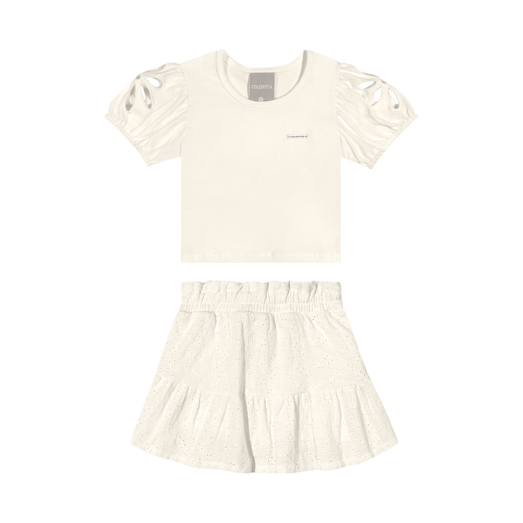 Conjunto Infantil Menina Bordado Vazado Colorittá Bege