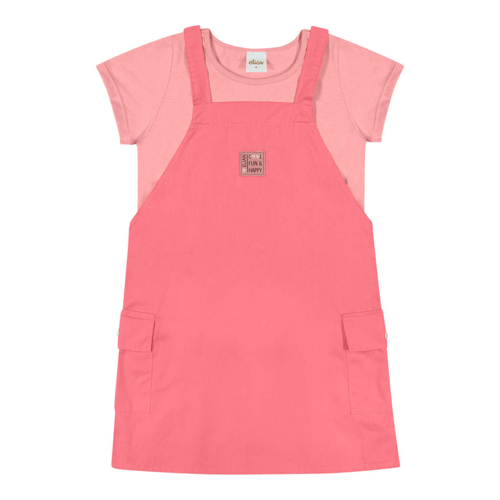 O Conjunto Elian é composto por blusa em meia malha e vestido em sarja. O vestido de alças é o grande destaque do look, com etiqueta decorativa exclusiva da marca e bolsos laterais. A sobreposição moderna com a blusa de mangas curtas e estampa lisa traz um toque estiloso e divertido, ideal para passeios em família e momentos de lazer. Aposte nessa combinação cheia de personalidade para as meninas arrasarem em qualquer ocasião!Detalhes da peça: • Conjunto composto por blusa e vestido • Feito em meia malha e sarja • Blusa manga curta com estampa lisa • Vestido com alças e bolsos • Ideal para passeios em família e momentos de lazer