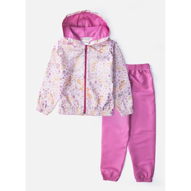 Conjunto Infantil Menina Corta Vento C/Capuz Unicórnio Rosa Bebê 254 - Laluna