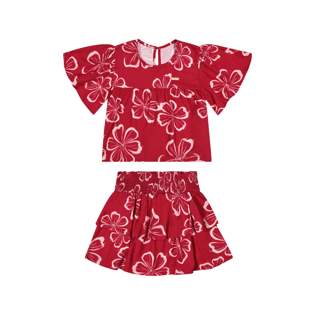 Conjunto Infantil Menina Floral Hibisco Colorittá Vermelho