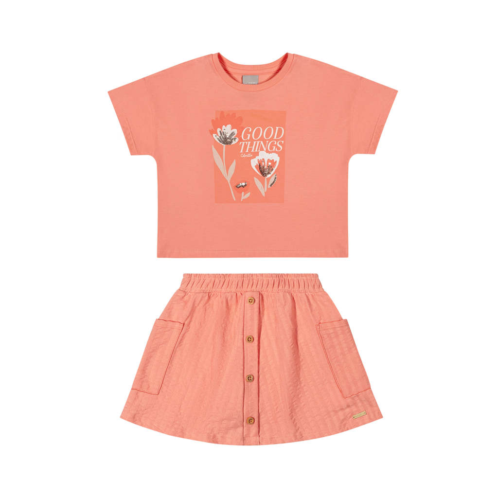Conjunto Infantil Menina Flores Colorittá Laranja