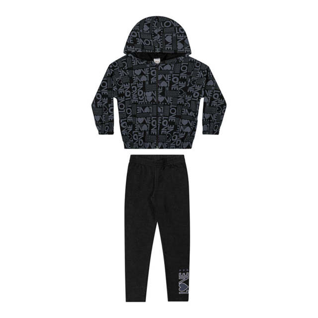 Conjunto Infantil Menina Jaqueta Estampada Elian Preto