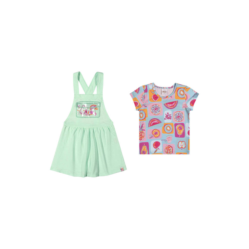 Conjunto Infantil Menina Jardineira e Blusa Frutas Elian Verde
