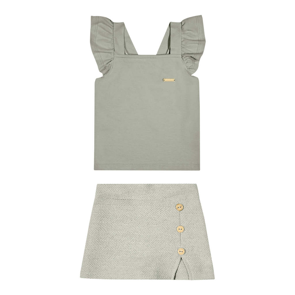 O Conjunto Colorittá é composto por blusa em cotton leve e short saia em malha tricô linho. A blusa possui alças com babados e transpasse nas costas, trazendo um delicado laço no centro. Já o short saia conta com elástico no cós, recorte frontal e detalhes em botões decorativos, proporcionando um visual mais sofisticado. Ideal para passeios e festas em família, esse look é a escolha certa para as meninas que amam charme e conforto. Invista nesse must-have!Detalhes da peça: • Conjunto composto por blusa e short saia • Feito em cotton leve e malha tricô linho • Possui alças com babados • Transpasse nas costas com detalhe em laço • Elástico no cós • Detalhe em recorte com botões decorativos • Ideal para passeios e festas em família