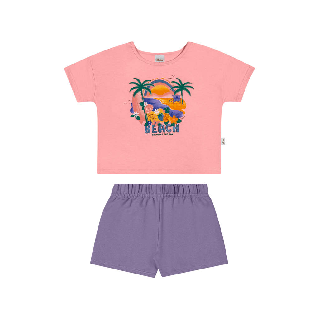 O Conjunto Elian é composto por blusa em meia malha e short em moletom sem felpa. A blusa possui mangas curtas com ombros deslocados e estampa frontal colorida, trazendo um toque alegre para dias ensolarados. Já o short liso conta com elástico no cós, proporcionando liberdade de movimentos. Ideal para momentos divertidos e de lazer, aposte nesse conjunto cheio de estilo para acompanhar as meninas nessa estação!Detalhes da peça: • Conjunto composto por blusa e short • Feito em meia malha e moletom sem felpa • Mangas curtas com ombros deslocados • Estampa frontal colorida • Elástico no cós • Ideal para momentos de lazer