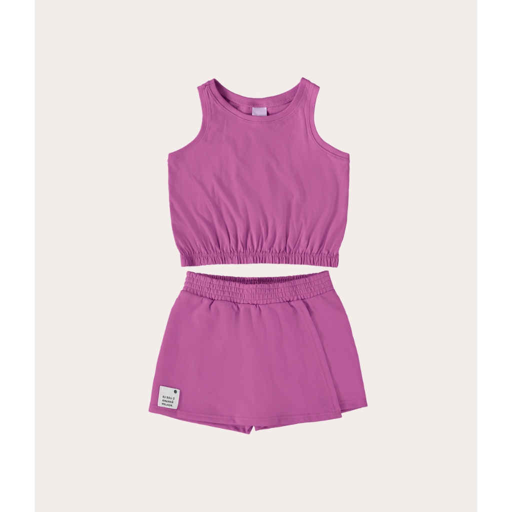Conjunto infantil confeccionado em meia malha de algodão e moletinho eco. Sua parte superior em regata contando com decote redondo, alças médias e barra aplicada em elástico. O shorts saia possui cintura em elástico, frente transpassada e etiqueta decorativa. As peças da Malwee Kids são confortáveis, versáteis, com modelagens e cores atuais e visual descolado para todos os momentos. São roupas que duram tanto quanto a energia das crianças. Aposte com tênis de cano baixo! • Regata: Decote Redondo Alças Médias Barra Elástica • Shorts Saia: Cós em Elástico Etiqueta Decorativa